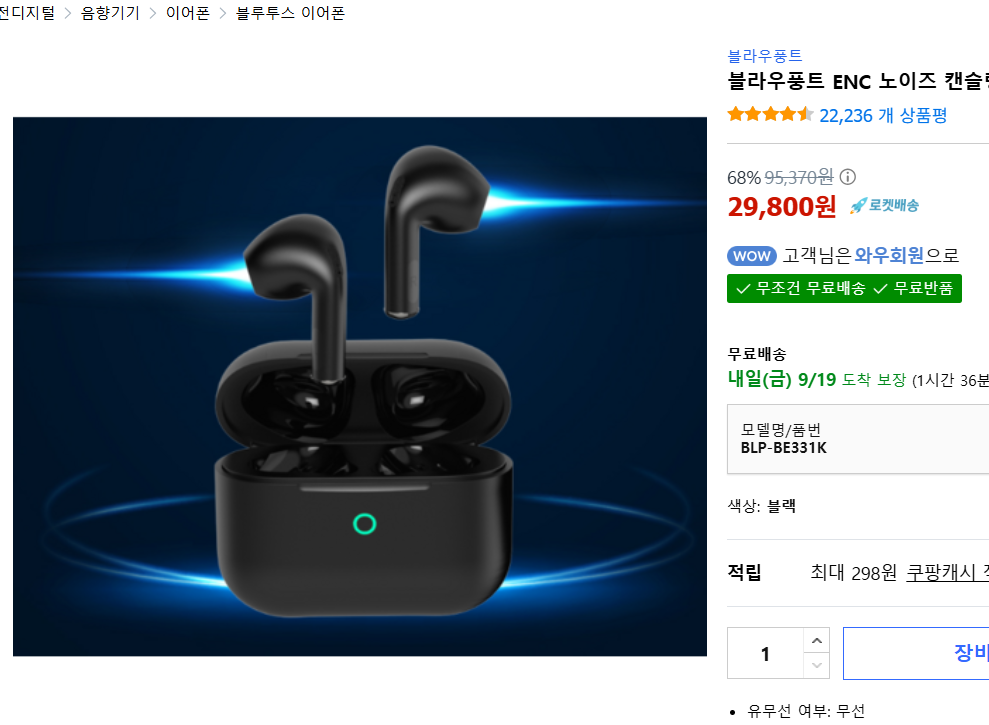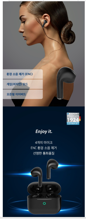 | 제품명 | 블라우풍트 ENC 노이즈 캔슬링 블루투스 이어폰 |