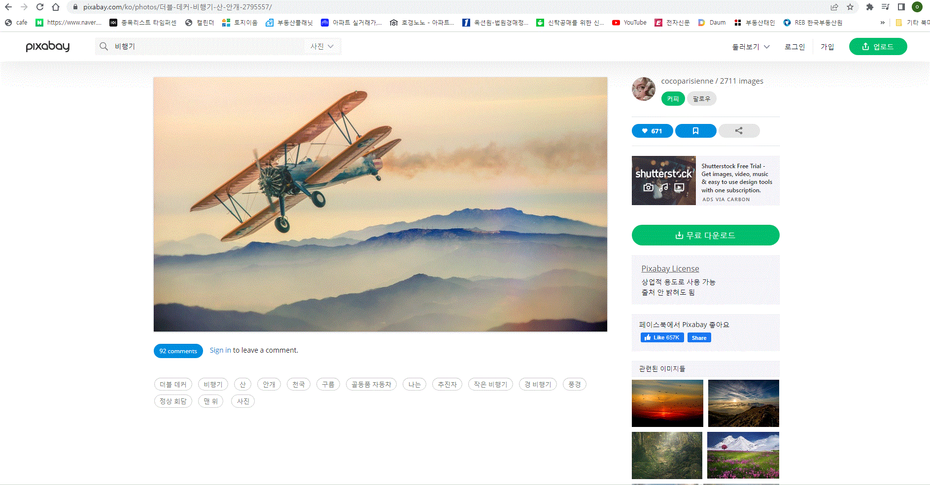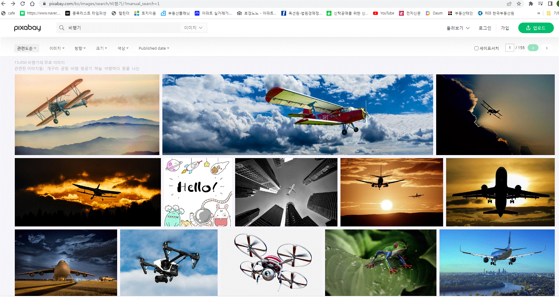 예를 들어 저는 비행기를 검색했더니 아래 비행기와 하늘, 밤하늘, 바다 드론 등 이미지가 많이 나왔어요