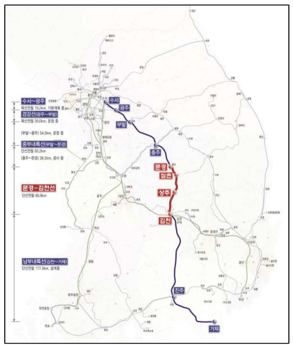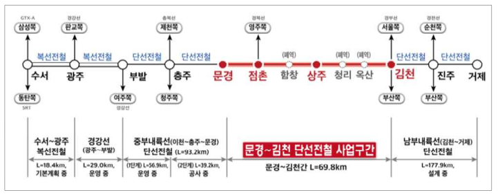 - 사업내용 : 문경 ~ 김천간 69.8km 단선전철 건설