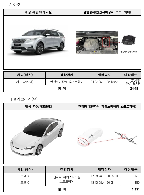 벤츠·기아·테슬라 등 자발적 시정조치(리콜) |
