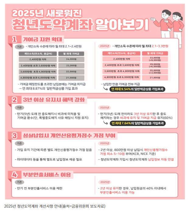 금융위원회에서는 2025년부터 모든 소득구간에서 청년도약계좌 매칭한도를 월 70만원 까지